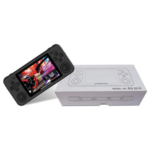 Marka Anbernic Model RG351P Kolor Czarny Materiał Plastik Wyświetlacz 3.5 calowy, IPS, rozdzielczość 320x480 px Procesor RK3326 czterordzeniowy 1.5 GHz Pamięć RAM DDR3L 1GB Pamięć wewnętrzna 64 GB System Linux Wspierane gry Obsługa formatów: PSP, PS1, DC, N64, CPS1, CPS2, FBA, NEOGEO, NEOGEO POCKET, GBA, GBC, GB, SFC, FC, MD, SMS, GG, MSX, PCE, WSC, itp. Bateria Litowo-polimerowa 3500 mAh Czas działania baterii do 8 h Języki Wsparcie dla wielu języków Inne funkcje Wsparcie zewnętrznej karty sieciowej Wi-Fi / Double OTG / Double 3D rocker / Wsparcie słuchawek stero 3.5 mm W zestawie - Kabel ładujący USB