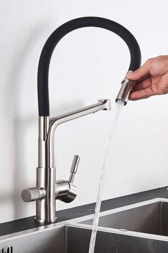 - Wygoda użytkowania: Dzięki dodatkowej wylewce na wodę filtrowaną, bateria kuchenna zapewnia wygodne i szybkie korzystanie z czystej wody bez konieczności korzystania z oddzielnych filtrów wody lub butelek z wodą pitną.