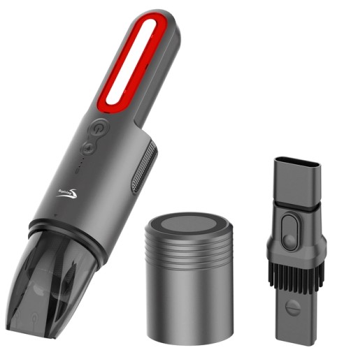 Kompaktowy rozmiar odkurzacza umożliwia schowanie go w schowku, szafce, samochodzie, a nawet w biurku. Poręczny zbiornik jest odpowiedni do zbierania drobnych odpadów