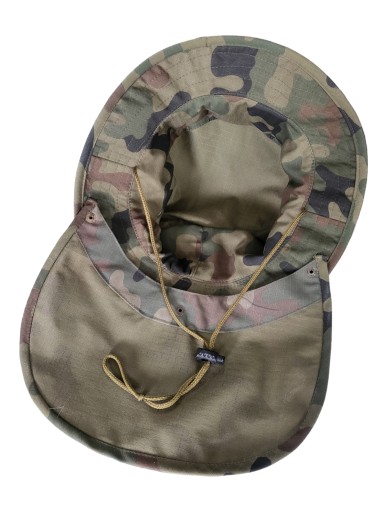 Funkcjonalny kapelusz wojskowy z osłoną na kark doskonale chroni głowę i kark przed promieniami słońca.