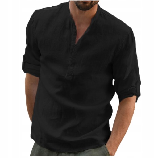 СТИЛЬНАЯ МУЖСКАЯ ЛЬНЯНАЯ ПЛЯЖНАЯ РУБАШКА С ВОРОТНИКОМ СТОЙКА