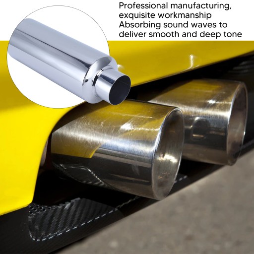4. Rozmiar: Długość tłumika wydechu ze stali nierdzewnej wynosi 13,7 cala, wlot 2,5 cala, wylot 2,5 cala, niełatwy do zgięcia ani odkształcenia, stabilny i niezawodny.