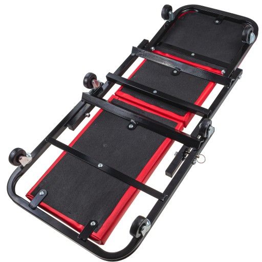 W kilka sekund zamienisz tę leżankę w wygodny taboret warsztatowy. Musisz coś zrobić przy drzwiach? Nie ma problemu - rozkładasz siedzisko i masz wygodne siedzenie! Leżanka posiada 6 obrotowych kółek. To sprawi, że bez problemu przemieścisz się pod każdym autem - nie musisz nawet wstawać z leżanki. Leżanka jest idealnie wyprofilowana - nie musisz już martwić się o ból pleców, nawet po kilku godzinach pracy pod autem.