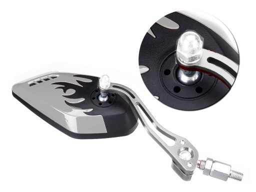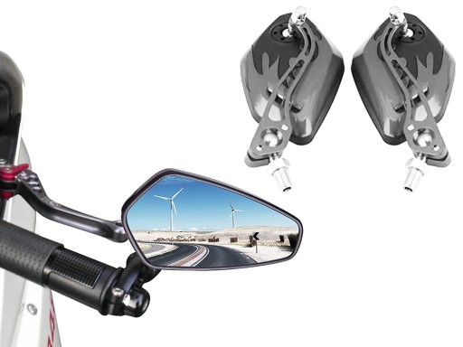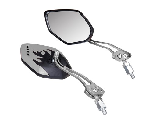 Duże lusterka motocyklowe zostały wykonane z solidnych materiałów. Lusterką są bardzo lekkie wykonane z aluminium oraz tworzywa sztucznego. Świetnie prezentują się na każdym motocyklu i są alternatywą dla fabrycznych lusterek. Lusterka zapewniają dobrą widoczność co znacząco wpływa na bezpieczeństwo w ruchu drogowym.Mocowanie uchwytu do lusterka jest obrotowe, można je obracać w dowolną stronę.