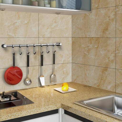 Materiał: Dziesięć szafek kuchennych wykonanych z wysokiej jakości stali nierdzewnej 304 o szczotkowanym wykończeniu, aby hak był bardzo skonfigurowany i płynny, 7 haczyków można płynnie przesuwać, bardzo można zastosować do kuchni domowej i łazienki.