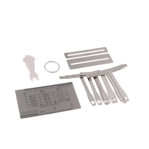 Zawiera 9 mierników podstrunnicy, 1 ściągacz pinów, 1 linijkę miernika akcji strun, 2 osłony progów podstrunnicy
