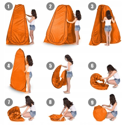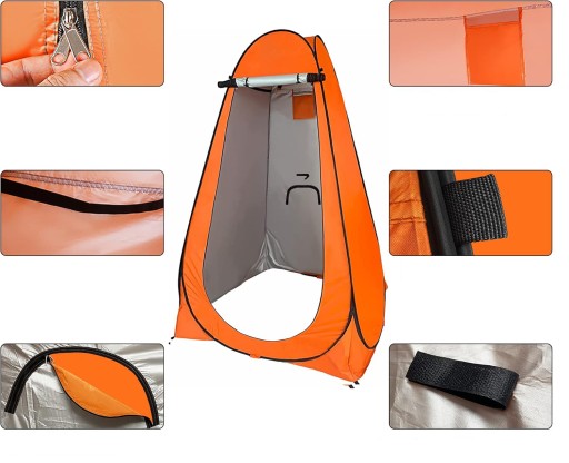 Przenośny, rozkładany namiot toaletowy, łatwy i szybki w montażu. Można go szybko i automatycznie rozłożyć i złożyć po użyciu, dzięki czemu nie musisz tracić zbyt wiele czasu na rozkładanie namiotu.