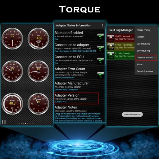 Odczyt diagnostycznych kodów usterek, zarówno ogólnych, jak i specyficznych dla producenta, i wyświetlanie ich znaczenia (ponad 3000 definicji kodów ogólnych