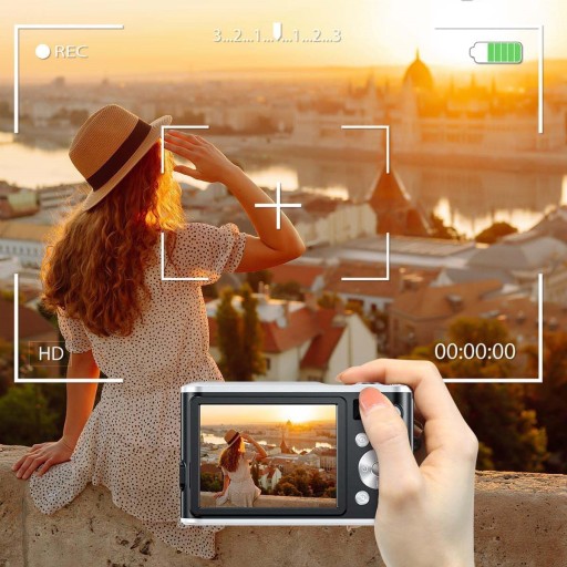 Aparat cyfrowy 4K obsługuje tryb wideo, wbudowany mikrofon i funkcję przeciwwstrząsową, łączy się z komputerem za pomocą kabla USB i służy jako kamera internetowa do rozmów wideo i transmisji na żywo, umożliwiając dzielenie się wspaniałymi chwilami Media społecznościowe.