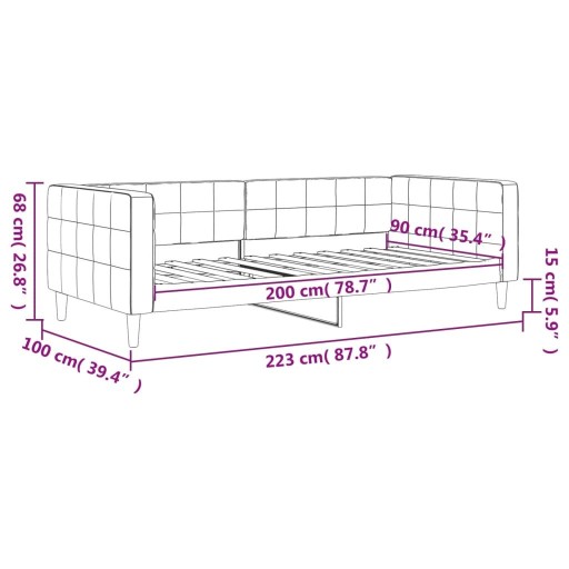 Ten mebel 2-w-1, pełniący zarówno funkcję łóżka, jak i sofy, będzie praktycznym i przyciągającym uwagę dodatkiem do Twojego salonu lub sypialni. Wielofunkcyjne łóżko dzienne: kanapa ta może posłużyć jako sofa w ciągu dnia lub jako łóżko w nocy, oferując szybki sposób na przenocowanie gości.Wygoda: sofę z funkcją spania obito aksamitem. Aksamit to miękka i wygodna tkanina, która jest przyjemna w dotyku. Dodatkowo oparcie i podłokietniki łóżka dla gości zostały wypełnione gąbką, aby zapewnić większy komfort siedzenia.Solidna i stabilna rama: główna rama kanapy jest wykonana z metalu i litego drewna, co gwarantuje jej wytrzymałość i trwałość. Listwy ze sklejki umożliwiają lepszy przepływ powietrza, dzięki czemu materac dłużej zachowuje świeżość, a także zwiększają nośność mebla i zapewniając jego stabilność.Nowoczesny design: sofa z funkcją spania prezentuje nowoczesny design, charakteryzujący się prostymi liniami i minimalistycznym wyglądem, dzięki czemu wprowadzi odrobinę nowoczesnego stylu do Twojego wnętrza. Warto wiedzieć:Materac nie jest dołączony do tego łóżka. Oferujemy szeroki wybór materacy w naszym sklepie. Pasujący materac można znaleźć w naszym sklepie.