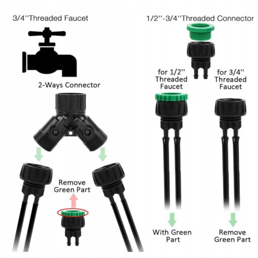 ✅3. Zawór przełączający z podwójnym wylotem, może korzystać z jednego wylotu wody niezależnie lub dwóch wylotów wody w tym samym czasie. Nadaje się do kranu lub interfejsu z gwintem zewnętrznym G3/4. Pojedyncze złącze G1/2 G3/4 2 w 1 może jednocześnie łączyć dwa węże 4/7.