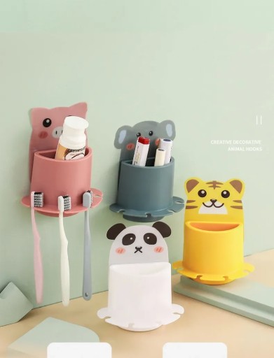 Modelagem dier bonito doen banheiro pasta tipo escova de dentes cremalheira de dentes casa suporte de armazenamento fixado na parede decoração da parede