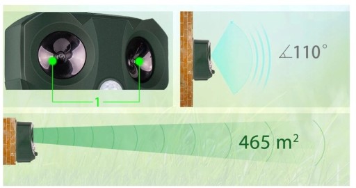 - Emituje nieprzyjemne dla szkodników ultradzwięki o częstotliwościach od 400 aż do 1000Hz.