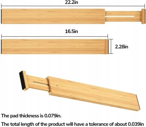 * Regulowana długość-konstrukcja szuflada kuchenna idealnie pasuje do każdej szuflady. Długość tych dzielniki do szuflad rozciąga się od 17 cali do 22 cali i szerokość wynosi 2.36 cali. Mogą być umieszczone pionowo lub poziomo, a nawet mogą być ułożone w szufladach.