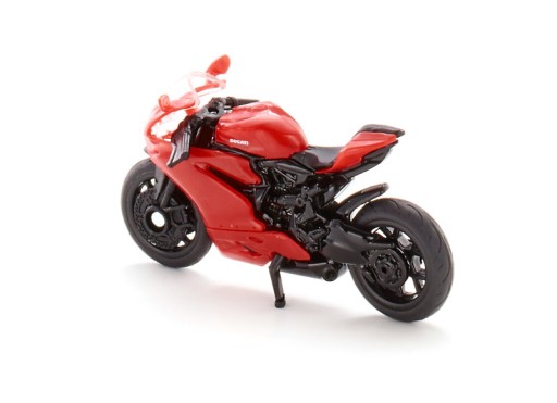 Czerwony. Szybki. Dynamiczny. Ducati Panigale 1299 pokonuje zakręty z rykiem silnika. Zbuduj dzięki Siku World krętą trasę i zobacz, jak Ducati w zaskakujący sposób pochyla się i pokonuje zakręty. Jako wierna imitacja oryginału ten agresywny typ motocykla prezentuje się w bogatej w detale wersji i wykonany jest z dobrej jakości ciśnieniowego odlewu cynkowego. Panigale ma pełną czerwieni kolorystykę i dysponuje sterownym kołem przednim oraz stojakiem, który można złożyć i rozłożyć.