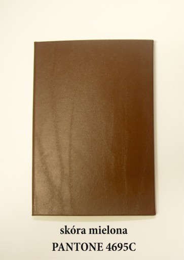 1. skórę mieloną w ciemnym brązie - koszt okładki 18zł/szt. (dopłata 6zł do ceny w aukcji)