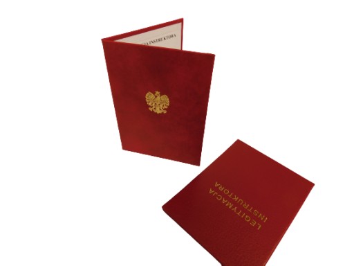 - na okładce wytłoczone godło lub napis LEGITYMACJA INSTRUKTORA w kolorze złotym lub srebrnym