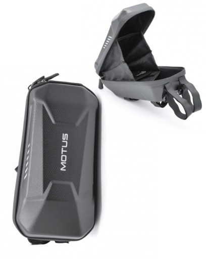 Sakwa Motus jest wykonana z wodoodpornego materiału, a jej sztywna konstrukcja zapewnia ochronę zawartości. Dodatkowe elementy odblaskowe zwiększają widoczność po zmroku, co przekłada się na większe bezpieczeństwo na drodze. Mocowanie sakwy odbywa się za pomocą regulowanych rzepów, co sprawia, że pasuje ona do większości dostępnych na rynku hulajnóg. Starannie wykonane wykończenia łączą elegancję z funkcjonalnością, spełniając oczekiwania nawet najbardziej wymagających użytkowników. Wnętrze sakwy wyłożone jest miękką pianką, która chroni przewożone przedmioty.