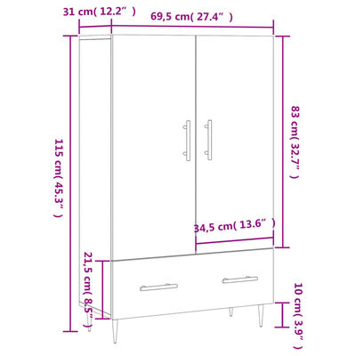 - Wymiary całkowite: 69,5 x 31 x 115 cm (szer. x gł. x wys.)
