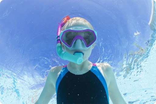 Teraz możesz nurkować i korzystać z zabawy w wodzie do woli! Maska do pływania, która znajduje się w zestawie, posiada soczewki z poliwęglanu