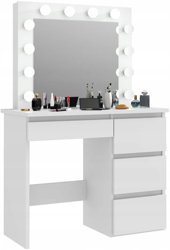Toaletka wyposażona jest w podświetlenie LED. 12 lampek LED zapewniają równomierne i jasne światło, które nie tylko ułatwia aplikację kosmetyków, ale także pozwala na dokładne zobaczenie każdego detalu.