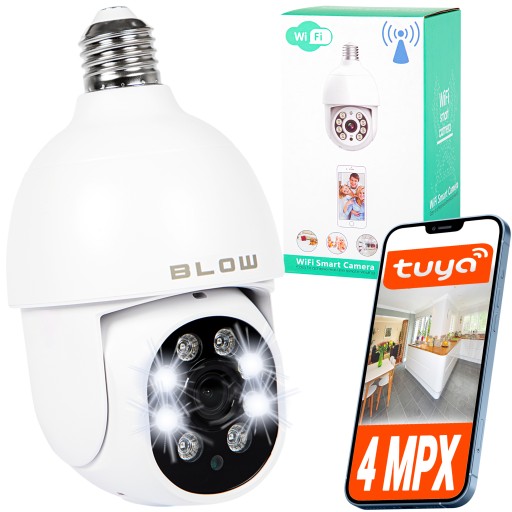 OBROTOWA KAMERA WEWNĘTRZNA ŻARÓWKA WIFI IP 4MPx WQHD GWINT E27 AUDIO TUYA