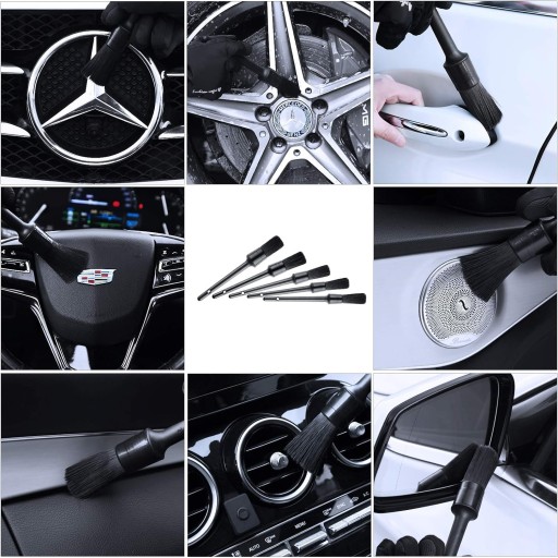 ✅ Kompletny zestaw do czyszczenia samochodu: Kompletny zestaw narzędzi do czyszczenia samochodu, w tym 1 ściereczka do czyszczenia z mikrofibry, 5 szczotek do detali, 1 szczotka do kół, 1x Szczotka z krótkim uchwytem,1x Szczotka płaska.