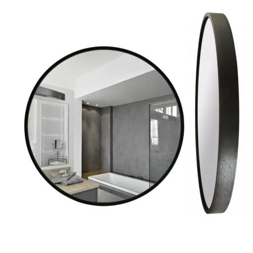 DUŻE LUSTRO OKRĄGŁE ŚCIENNE ŁAZIENKOWE SALON SYPIALNIA CZARNE 50CM
