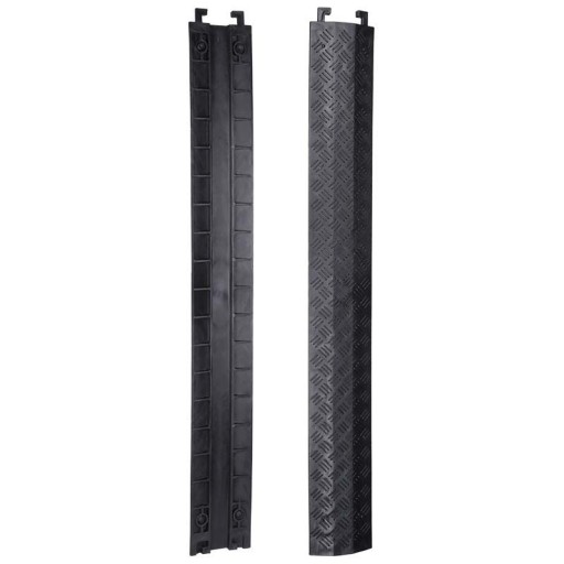 Profesjonalny czarny najazd kablowy o długości 1 m, dzięki któremu w łatwy sposób osłonimy różnego typu leżące okablowanie i przewody przed nadepnięciem, najechaniem lub przypadkowym zahaczeniem, co może stwarzać niebezpieczeństwo zarówno dla uczestników wydarzenia i samej instalacji kablowej.
