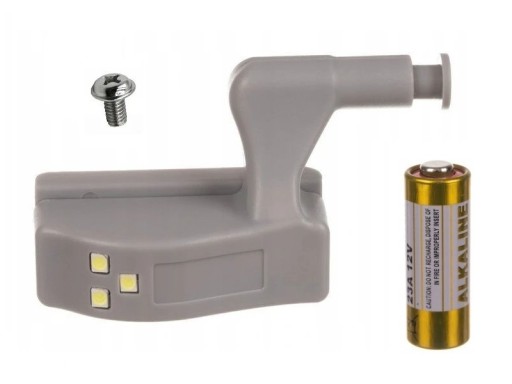 - 3 LAMPKI LED – lampka do szafki na zawias posiada 3 mocne i trwałe lampki LED, które oświetlą zimnym białym światłem niemal każdy kąt w Twojej szafce. Lampka zasilana jest baterią 23A 12V, która wystarczy na bardzo długi czas.