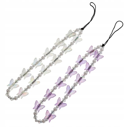2 x zawieszki do telefonu w kształcie motyli z koralikami