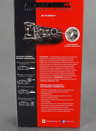 Ceramizator – wysokiej jakości preparat, przeznaczony do ochrony i rewitalizacji automatycznych skrzyni biegów. Pozwala to na znaczną redukcję tarcia oraz stałą ochronę podzespołów, praktycznie eliminując proces ich zużycia. Regularne stosowanie pozwala znacząco wydłużyć żywotność skrzyni biegów. Zapewnia ochronę na 100 000 KM. Polecany do wszystkich typów przekładni automatycznych włącznie z Tiptronic, Steptronic, CVT.