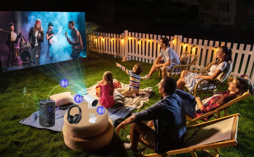 Mini-projektor z kablami do ładowania i obrotu o 180° jest łatwy do przenoszenia i urządzeń użytkowych. (Można go po prostu włożyć do plecaka lub walizki), na przykład podczas biwakowania, podróży lub imprez plenerowych.