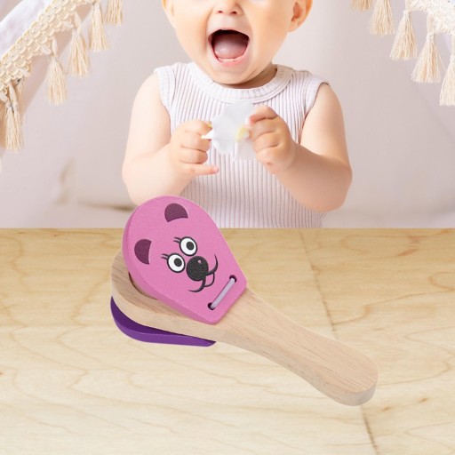 [Materiał]: zabawka kastaniety dla dzieci wykonana jest z materiału drewnianego, wielkość instrumentu kastaniety przeznaczona dla małych dłoni, mała i przenośna, gładka powierzchnia, wygodna w dotyku.