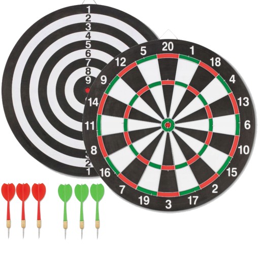 Tablica jest dwustronna - można grać na niej w klasycznego darta (22 różnie punktowanych sekcje) lub w rzutki na tarczy celownikowej (10 sekcji ze zwiększającą się wartością bliżej środka).