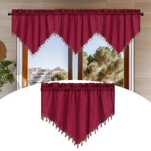 Trójkąt Valance do zasłony okiennej do piwnicy Kitchen Cafe, czerwony