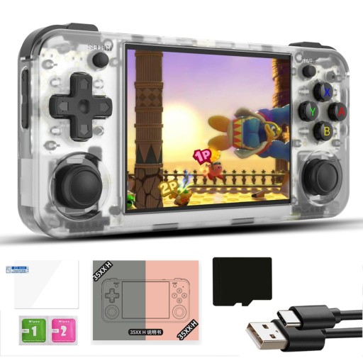 Ulepszona wersja przenośnej konsoli do gier RG35XX H z 2023 roku, z wbudowaną kartą SD 64G 5515 klasycznych gier, obsługuje ponad 10 formatów gier. Systemy Linux mogą dodawać emulatory i gry w powiązanych formatach.
