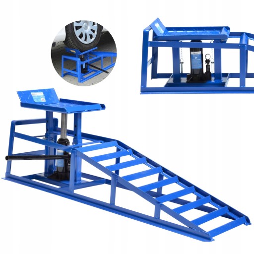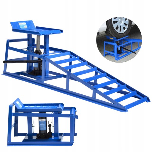 Rampa-najazd z hydrauliczną funkcją podnoszenia. Do stosowania podczas napraw i konserwacji pojazdów w warunkach garażowych jak i w profesjonalnych warsztatach samochodowych. Posiada 4 stopniową blokadę wysokości.