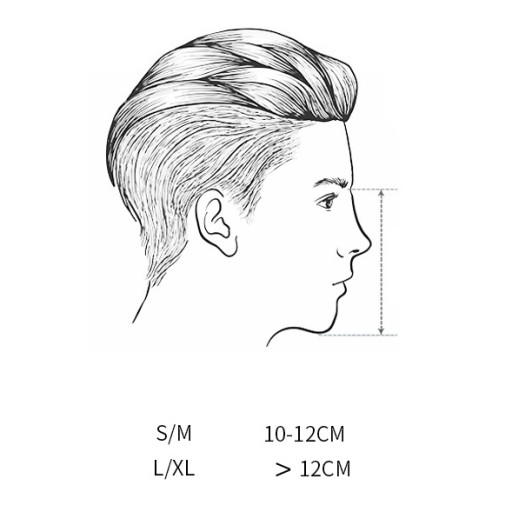 Aby przekonać się, jaka maska będzie dla ciebie odpowiednia, zmierz odległość pomiędzy podbródkiem a nasadą nosa - tak jak przedstawiono to na ilustracji obok. Jeśli odległość wyniesie pomiędzy 10 a 12 cm rozmiar S/M będzie dla Ciebie odpowiedni.