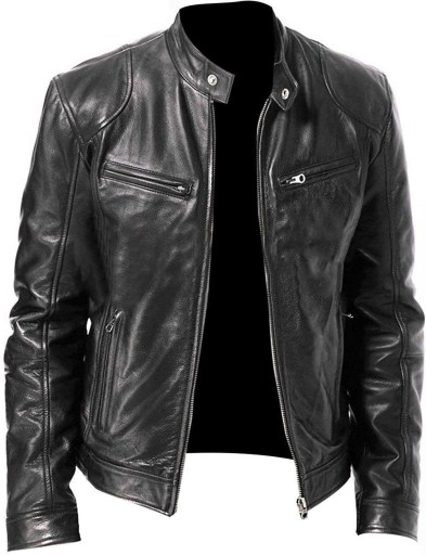 Ta skórzana kurtka dla mężczyzn jest wykonana z prawdziwej skóry.