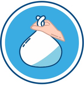 Niebieski kolor skrywa zawartość woreczka, a łatwe wiązane pozwalają na szczelne zamknięcie.