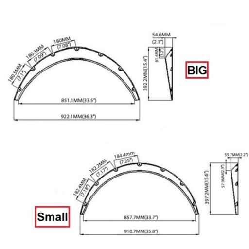 УНИВЕРСАЛЬНЫЕ РАСШИРИТЕЛИ КОЛЕСНЫХ АРОК – БОЛЬШИЕ 92 см – ABS