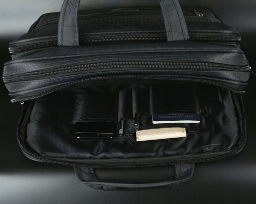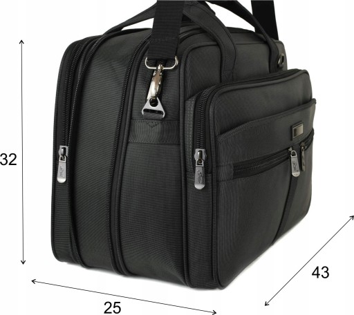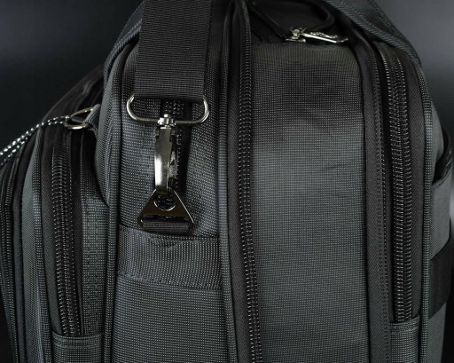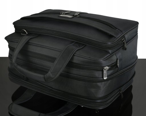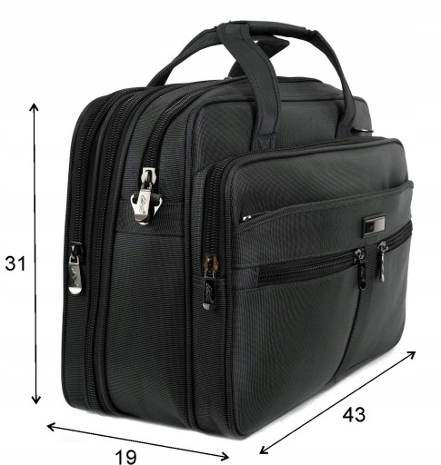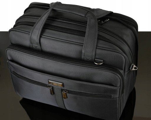 Rodzaj: Teczka/torba męska Przeznaczenie: elektronika, dokumenty, bagaż podręczny Konstrukcja: usztywniona elastyczną pianką Materiał: nylon/poliester Tkanina: wodoodporna Kolor: grafitowy Kolor okuć: grafitowy nikiel Kolor zamków: czarny Szerokość suwaków: 10 mm Wymiary: wysokość 31 cm , szerokość 43 cm, głębokość 25 cm Pomieści laptop do 15,9": Tak Pomieści segregator na dokumenty: tak Regulowana pojemność komory głównej: tak Maksymalna pojemność: 33 L Ilość komór: 3 Ilość kieszeni: 10 Ilość kieszeni zamykanych na suwak: 8 Organizer na telefony długopisy: Tak Uchwyty do ręki: Tak Pasek na ramię z regulacją: Tak Dwie możliwości mocowania paska: na bokach lub przód/tył Mocowanie do walizek na kółkach: Tak
