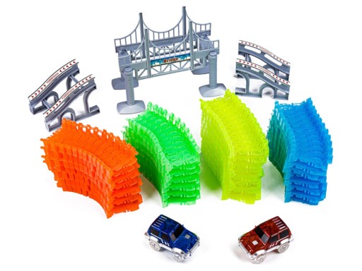 Małe rączki nie będą miały problemu z łączeniem, rozłączaniem i układaniem tych innowacyjnych, serpentynowych elementów toru. Złączone elementy można dowolnie skręcać i wywijać co pozwala na ułożenie nieskończonej ilości konfiguracji.