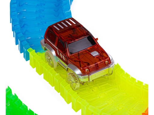 Ten super zjazd posiada mnóstwo przeszkód, przez co jazda po nim tym wyścigowym świecącym autkiem jest absolutnie odjazdowa! To prawie jak off-road, pełen ekstremalnych zakrętów, podjazdów, pętli i zjazdów.