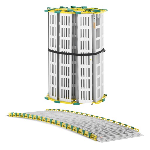 Rampa podjazdowa marki MSW sprawdzi się do wjazdu na wyższe poziomy w miejscach gdzie są schody dla wózków inwalidzkich, chodzików, kosiarek. skuterów, quadów itp. Konstrukcję urządzenia wykonano z mocnego aluminium wytrzymującego do 500 kg. Antypoślizgowa powierzchnia pasuje do gumowych kółek o średnicy większej niż 20 cm. Nie zaleca się twardych kółek mogących uszkodzić nawierzchnię. Składana konstrukcja oraz niewielka waga umożliwiają wykorzystanie rampy w dowolnym miejscu. Rozłożona ma wymiary 3000 x 914 mm a po zwinięciu śr. 635 mm x 914 mm.
