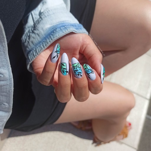 ➡️ Wykończenie: Opiłuj paznokcie, nadając im pożądany kształt, a następnie nałóż top coat, aby zabezpieczyć stylizację.
