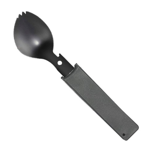 Łyżko-widelec to nie tylko uniwersalne sztućce, dzięki którym wygodnie zjesz każdy posiłek ale równie przydatne w wielu sytuacjach: otwieracz do butelek, gwizdek, otwieracz do puszek, skrobaczka do ryb a nawet harpun!