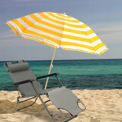 Rozkładany leżak ogrodowy, który znakomicie sprawdzi się podczas wypoczynku w przydomowym ogrodzie, jak również na plaży.