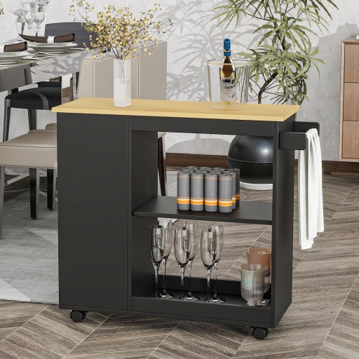 Wózek kuchenny jest wyposażony w 4 płynnie działające koła, z czego 2 są zamykane, dzięki czemu można go ustawić w dowolnym miejscu. Możesz też po prostu zostawić go w określonym miejscu.
